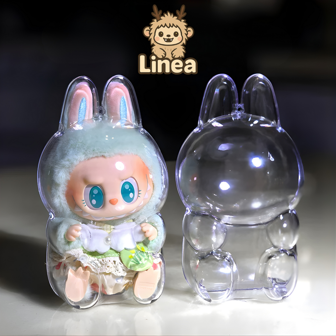 Protégez vos précieuses peluches Labubu tout en leur donnant du style grâce à la housse de protection en coton pour poupées assises V1, V2 Labubu. Cette housse transparente en PVC de haute qualité est conçue pour protéger vos peluches de 17 cm de la poussière, de la saleté et des dommages tout en mettant en valeur leur charme adorable.